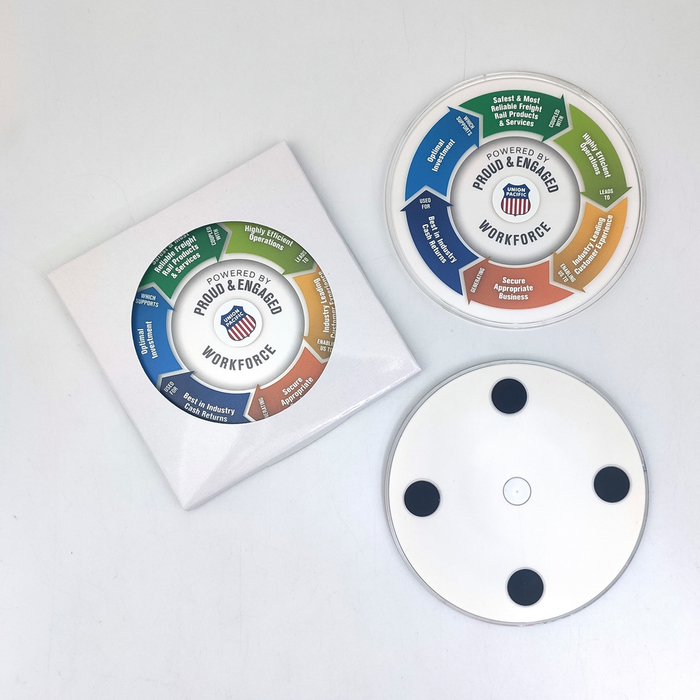 適合放置桌面,可當杯墊使用,也能當辦公室趣味小物。用手指轉動轉盤,會看見上層和下層圖案相互結合的有趣呈現。依照圖案設計不同,快速旋轉轉盤時,也能變成好玩的遊戲~讓生活多些小創意,享受無窮樂趣!
