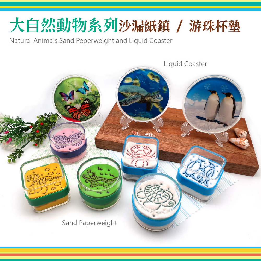 1.Flip over to see sand pattern come out magically and cheerfully ! 2.When sand trickles down,it's so touching and stress relieving ! 3.A beautiful, fun and pratical paperweight to sit on desk top. 4.The color of beach sand might be varied from picture for different source. 5.Patented, Made in Taiwan, gaurantee a superior quality.