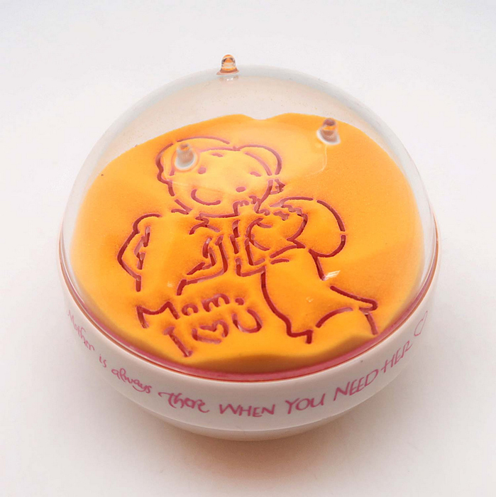 When flip over, you can see the texts/design revealed when sand trickle down from the molded plate. It's fun, soothing and stress-relieving!